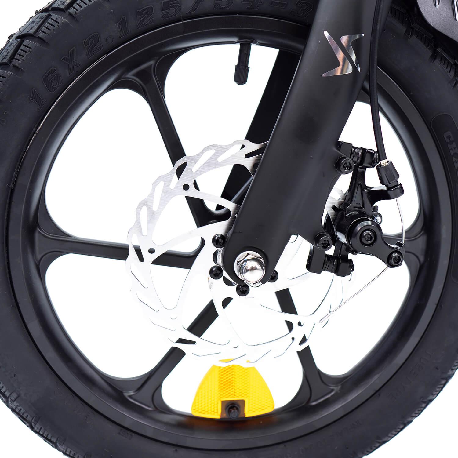 Equipada con un motor eléctrico de 250W y batería de litio de 36V 10Ah, alcanza fácilmente hasta 60 km de autonomía por carga, con una velocidad máxima asistida de 25 km/h, cumpliendo con la normativa europea. Su estructura plegable y ruedas de 16” resistentes la convierten en una opción ideal para desplazamientos urbanos, fácil de guardar o transportar.
